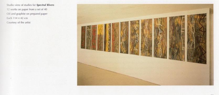 The serpentine and lyrical curves in the individual compositions reveal Cockrill's preoccupation with organic forms, especially water and the phases of a river flowing around the canvas.