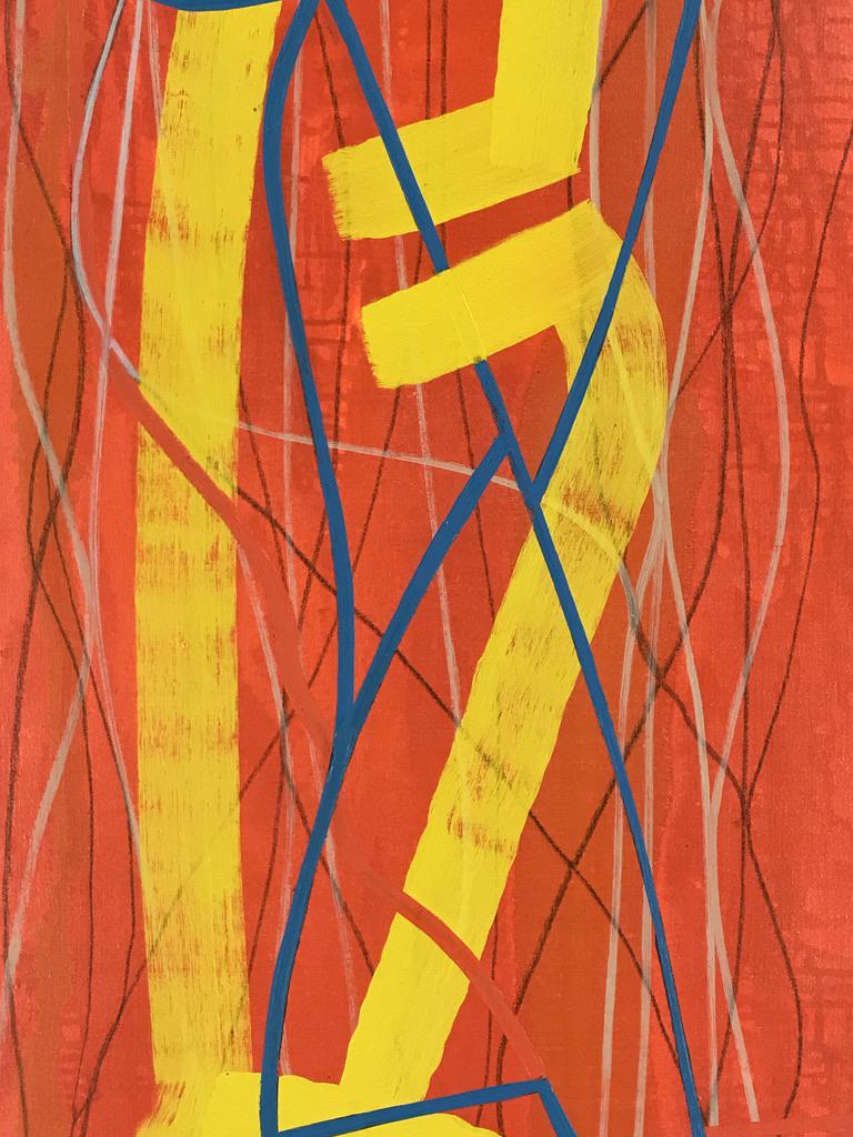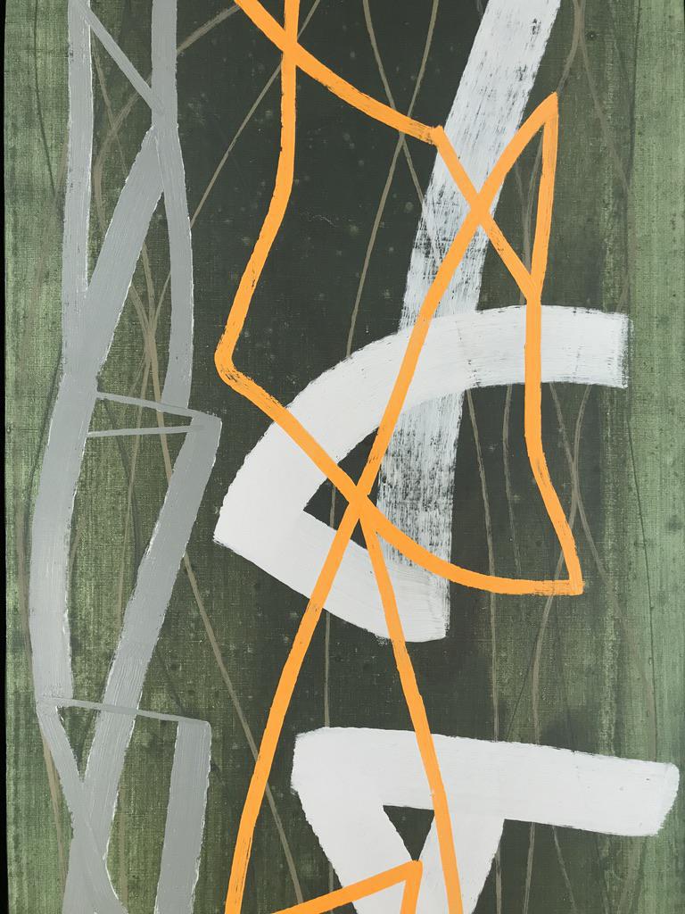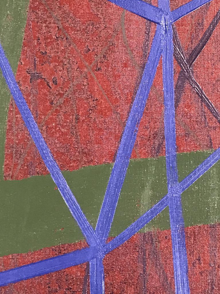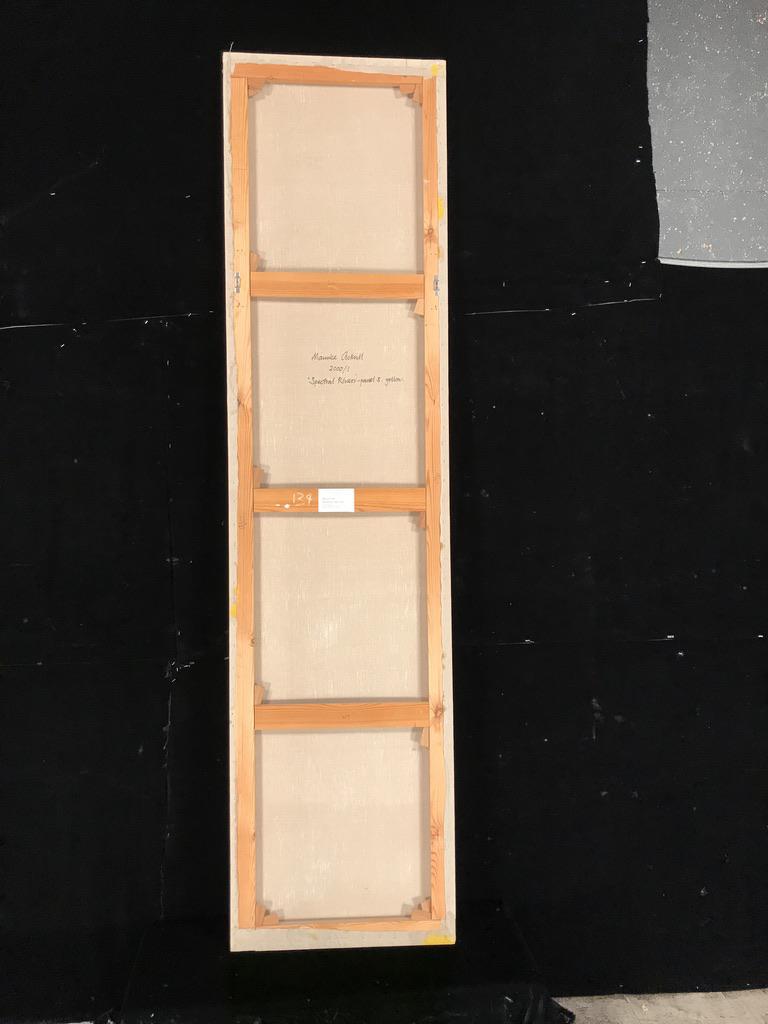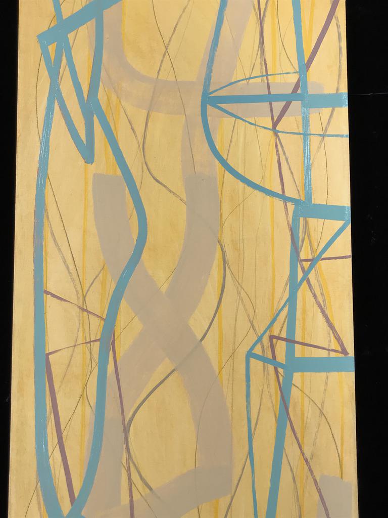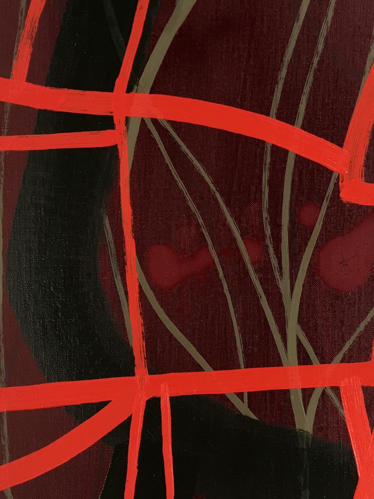• In the Spectral Rivers paintings, bold, angular signs are intertwined with more delicate filament, creating an effect of subtle amelioration.