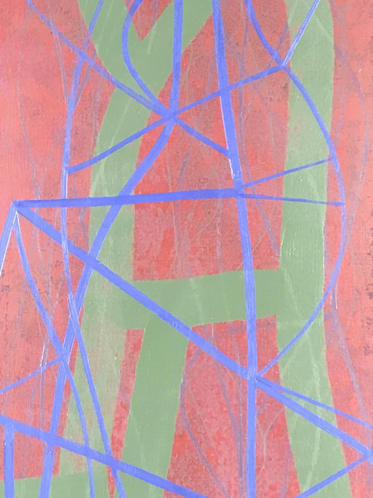 This series of fluid, abstract paintings evoke nature, the elements, the progress of the Conwy river to maturity and the scars that humans cut into the land.