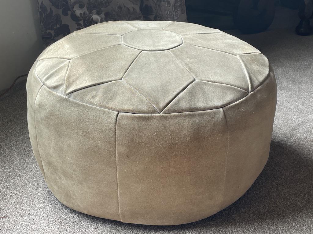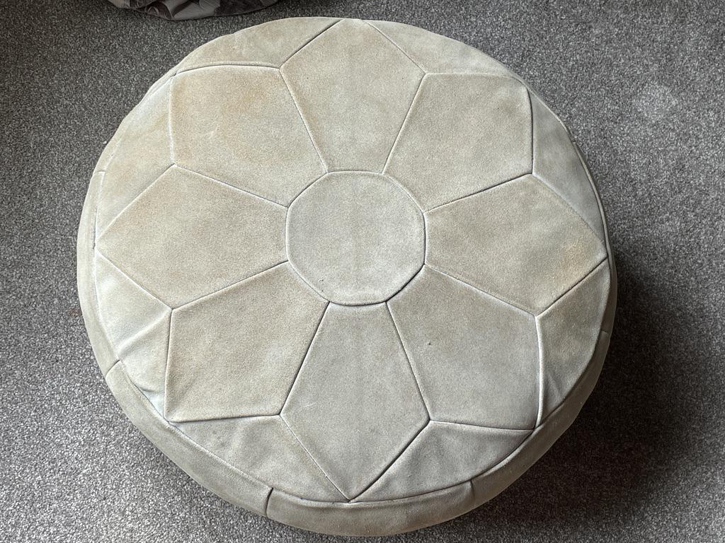Pouffe Pouf Ottoman Suede Round Vintage 1950s Beige Flowerhead Footrest